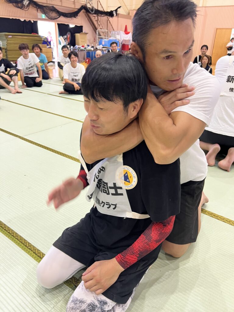 ミノワマンD・Zさんを相手に、実際に技をかける体験をさせてもらいました。