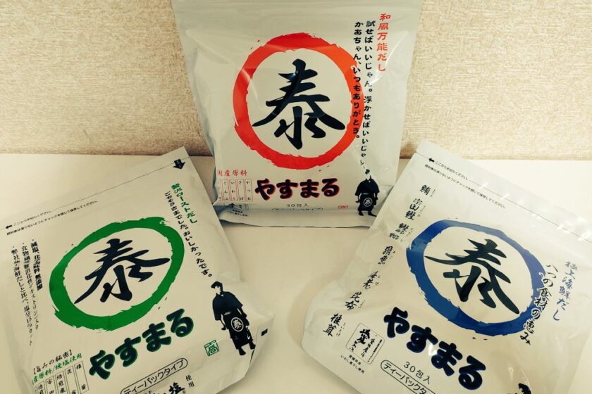看板商品は、四国で一番売れているといわれる和風万能だし「やすまるだし」で、そのほか赤ちゃん用やキャンプ用の出汁など多くの方に手に取って頂ける商品展開をされています。