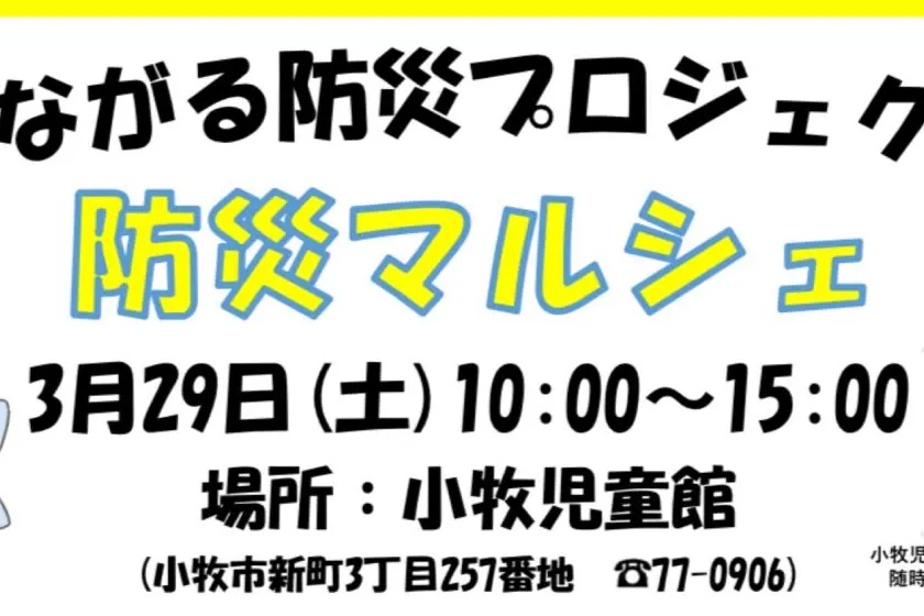 3月29日(土)10:00〜15:00、小牧児童館で開催される、つながる防災プロジェクト 「防災マルシェ」にて、情熱クラブ一般社団法人が炊き出しを行います!